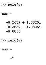 2. Найдем полюса и нули передаточной функции с использованием команд pole, zero.