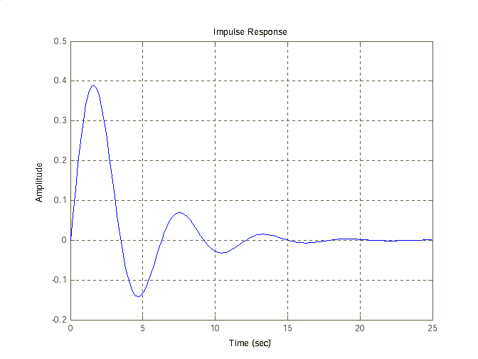 Рис.1.3. Переходная функция h(t) 4. Построим импульсную переходную функцию командой impulse(w). Результат показан на рис. 1.4.