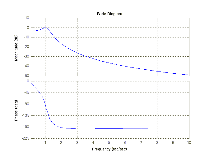 Найдем ее динамические и частотные характеристики с использованием ППП Control System Toolbox системы MatLab. Будем работать в командном режиме. 1. Создадим LTI-объект с именем w, для этого выполним: