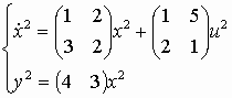 2. Создадим матрицы первой системы – >> A1=[7 3;2 1] A1 = B1 = C1 = Создавая, аналогично, матрицы двух других систем создадим ss-объекты: >> A2=[1 2;3 2]; a = b = c = d = Continuous-time model. >> s2=ss(A2, B2, C2,0) a = b = c = d = Continuous-time model. >> s3=ss(A3, B3, C3,0) b = c = d = Continuous-time model. 3. Исследуем наблюдаемость и управляемость каждой системы, для чего построим соответствующие матрицы и посчитаем их ранги – >> rank(obsv(A1,C1)) 2 >> rank(ctrb(A2,B2)) 2 >> rank(obsv(A2,C2)) 2 >> rank(ctrb(A3,B3)) 2 >> rank(obsv(A3,C3)) 2 Видно, что во всех случаях ранги матриц управляемости и наблюдаемости совпадают с размерностями пространства состояний. 4. Получим систему, определяемую соединением. Для корректного использования функции connect введем дополнительную систему, передаточная функция которой равна 1. >> s4 = tf(1) Transfer function: 1 >> sys=append(s1,s2,s3,s4); Обращаясь к данным объекта, можно получить матрицы А, В, С: >> A=s_com.A; 4. Вычислим ранги матриц наблюдаемости и управляемости итоговой системы: >> rank(ctrb(A,B)) 6 >> rank(obsv(A,C)) 6 Результаты показывают, что система управляема и наблюдаема. В оглавление книги \ К следующему разделу \ К предыдущему разделу |