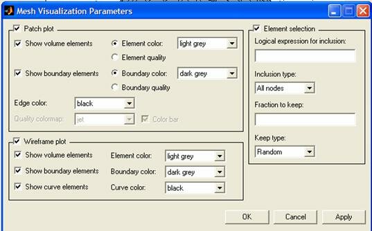 Диалоговая панель, изображённая на рис. 1.48, позволяет также настроить режимы показа всех инструментальных панелей. Визуализация конечноэлементной сетки Для управления параметрами визуализации конечноэлементной сетки в GUI-приложении femlab есть команда меню Mesh/ Visualization Parameters. Выполнение этой команды приводит к развёртыванию диалогового окна Mesh Visualization Parameters, изображённого на рис. 1.49.
