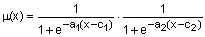 Построение графиков функций принадлежности в виде произведения двух сигмоидных функций