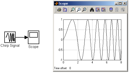 Рис. 9.1.8. Источник прямоугольных импульсов 9.1.9. Генератор линейно-изменяющейся частоты Chirp Generator Назначение: Параметры: