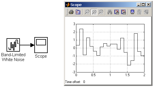 Рис. 9.1.9. Генератор линейно-изменяющейся частоты 9.1.10. Генератор белого шума Band-Limited White Noice Назначение: Параметры:
